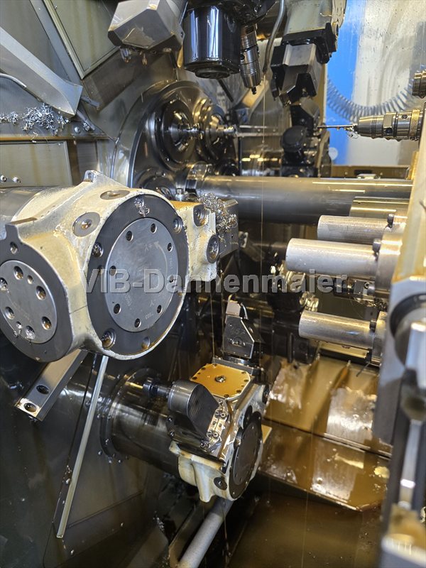 Die gebrauchte CNC Mehrspindeldrehmaschine Schütte SC 9-32 kombiniert innovative Technologie mit höchster Präzision für anspruchsvolle Fertigungsaufgaben. Mit neun Spindeln (sechs Hauptspindeln plus drei für Rückseitenbearbeitung), einem Stangendurchlass bis 32 mm und Spindeldrehzahlen bis 7.000 U/min garantiert sie maximale Produktivität. Die Siemens Sinumerik 840D-Steuerung und das modulare Werkzeugsystem ermöglichen Komplettbearbeitung komplexer Werkstücke ohne Umspannen. Eine ausgezeichnete Wahl für Unternehmen, die auf leistungsstarke Mehrspindeltechnologie zur Optimierung ihrer Serienfertigung setzen.